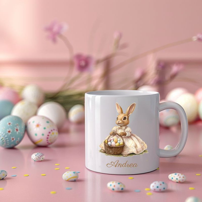 Razveselite najdraže jedinstvenim uskrsnim poklonom s personalizacijom! Naše keramičke šalice od 200 ml krase nježni proljetni motivi – zečići, pisanice i pastelni detalji – uz ime po želji, što ih čini savršenim darom za djecu i odrasle.