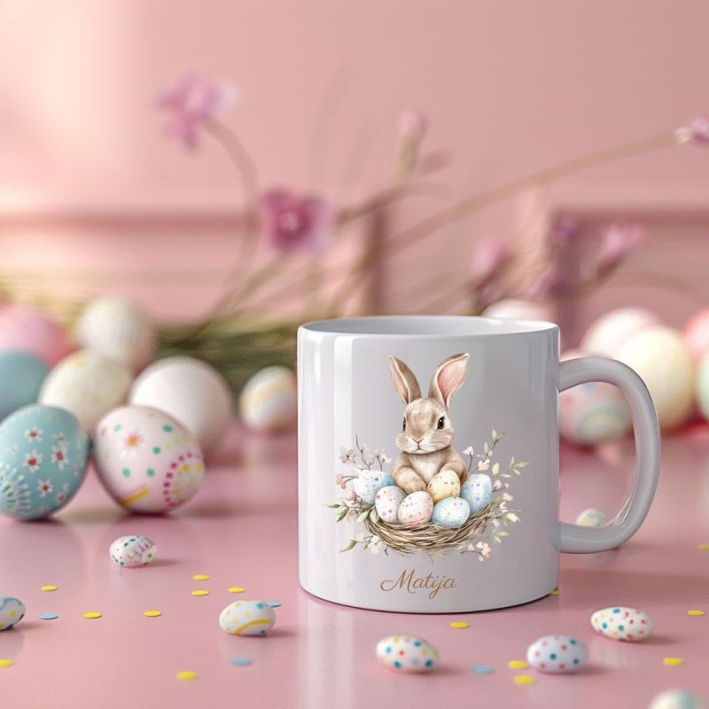 Naše keramičke šalice od 200 ml krase nježni proljetni motivi – zečići, pisanice i pastelni detalji – uz ime po želji, što ih čini savršenim darom za djecu i odrasle.