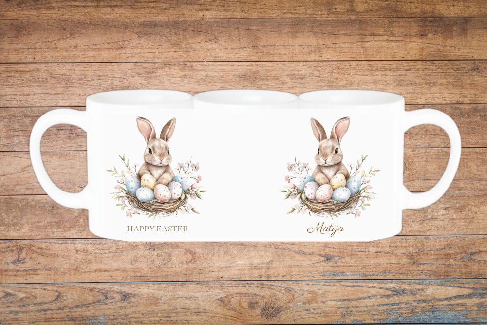 Razveselite najdraže jedinstvenim uskrsnim poklonom s personalizacijom! Naše keramičke šalice od 200 ml krase nježni proljetni motivi – zečići, pisanice i pastelni detalji – uz ime po želji, što ih čini savršenim darom za djecu i odrasle.